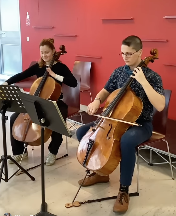 Deux concerts bénévoles de notre Duo de violoncelle avec Léonie, à la bibliothèque, pour les adultes, et un autre à destination des enfants.