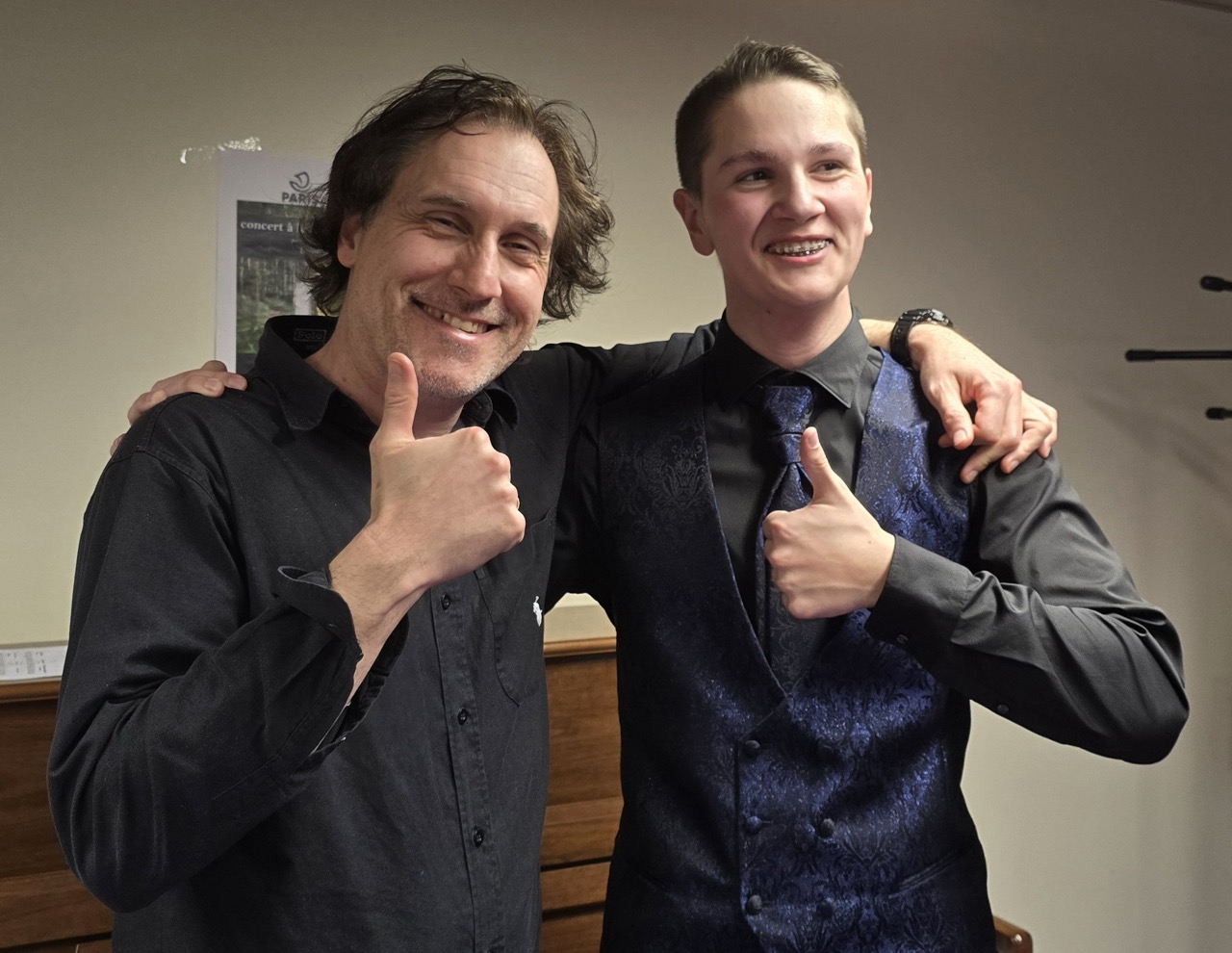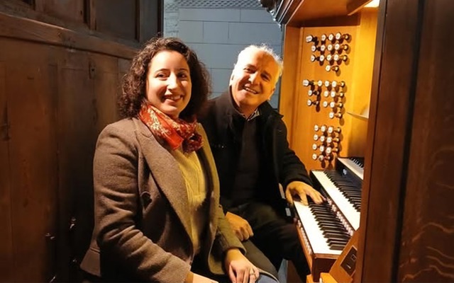 Friendly meeting with Frédéric Ledroit, titular organist of Saint-Pierre Cathedral in Angoulême. Concert "Dialogue Between Heaven and Earth" with Frédéric Ledroit on the organ and Marina Granadel-Pizzi on the piano, at Angoulême Cathedral, featuring the premiere of "Possession" by Frédéric Ledroit.