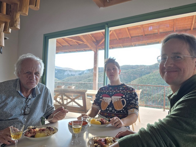 Meeting at home in Ardèche with Jean-Pierre Luminet, astrophysicist, poet, and musician, a friend of Dominique Proust, whom I met in Meudon. Mom had made a choucroute—no one can resist it!