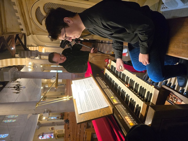 Séance de travail et de découverte de l’orgue avec Frédéric Ledroit. Enregistrement du répertoire maîtrisé, tests son et image, prise de repères.